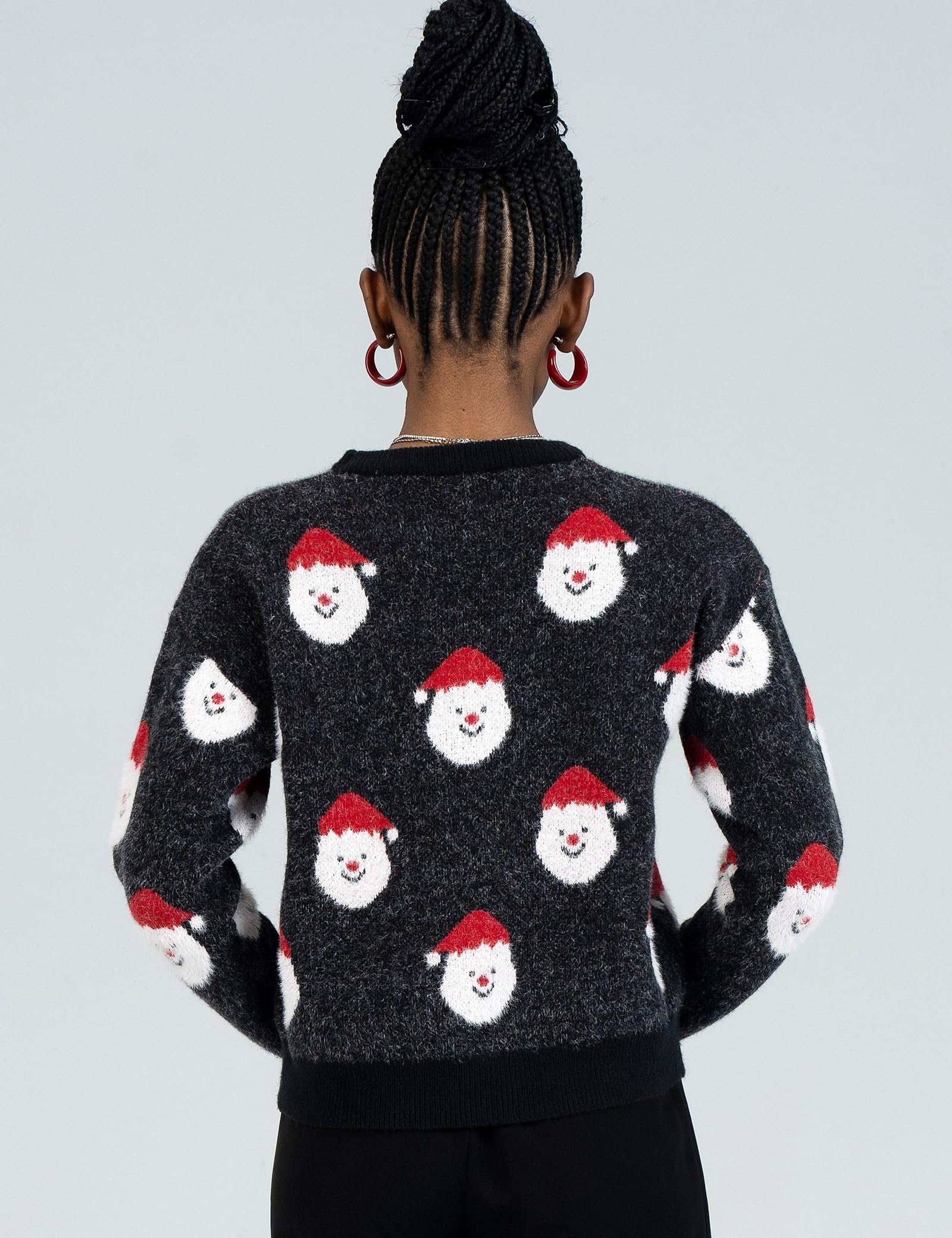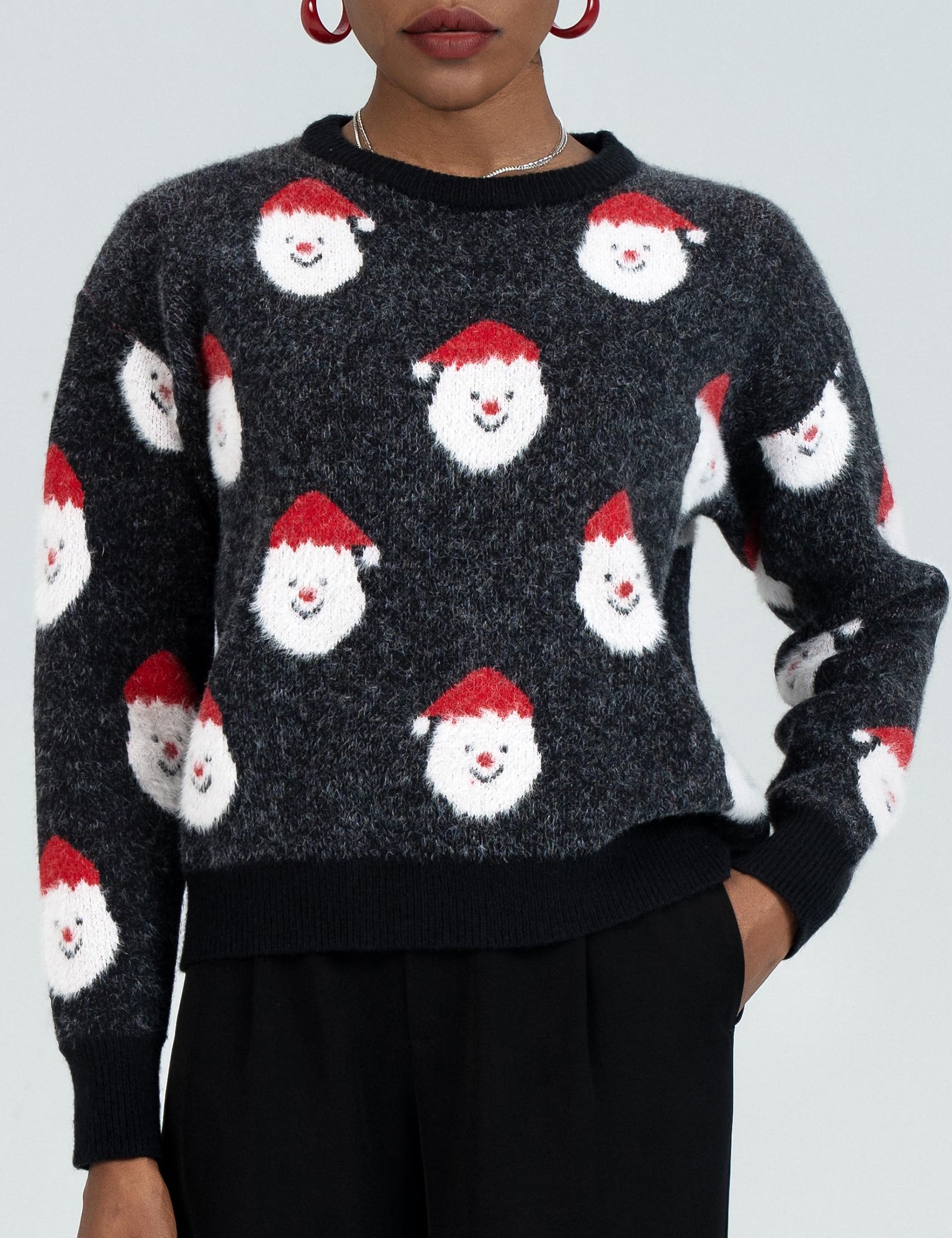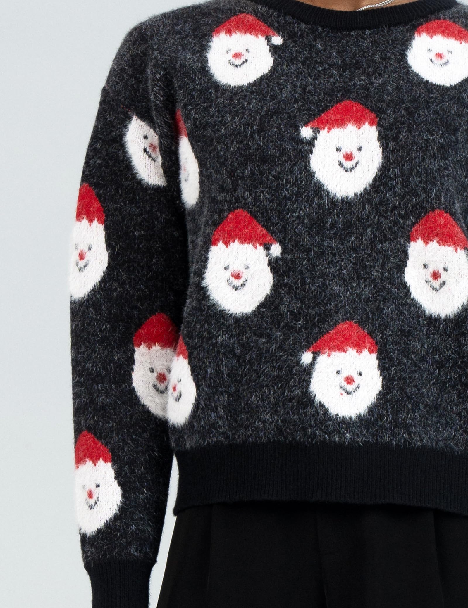 Design: Basic round neck long sleeve knit pullover sweater, cute Santa Claus print cropped sweater top, warm holiday party knit sweater for autumn and winter.