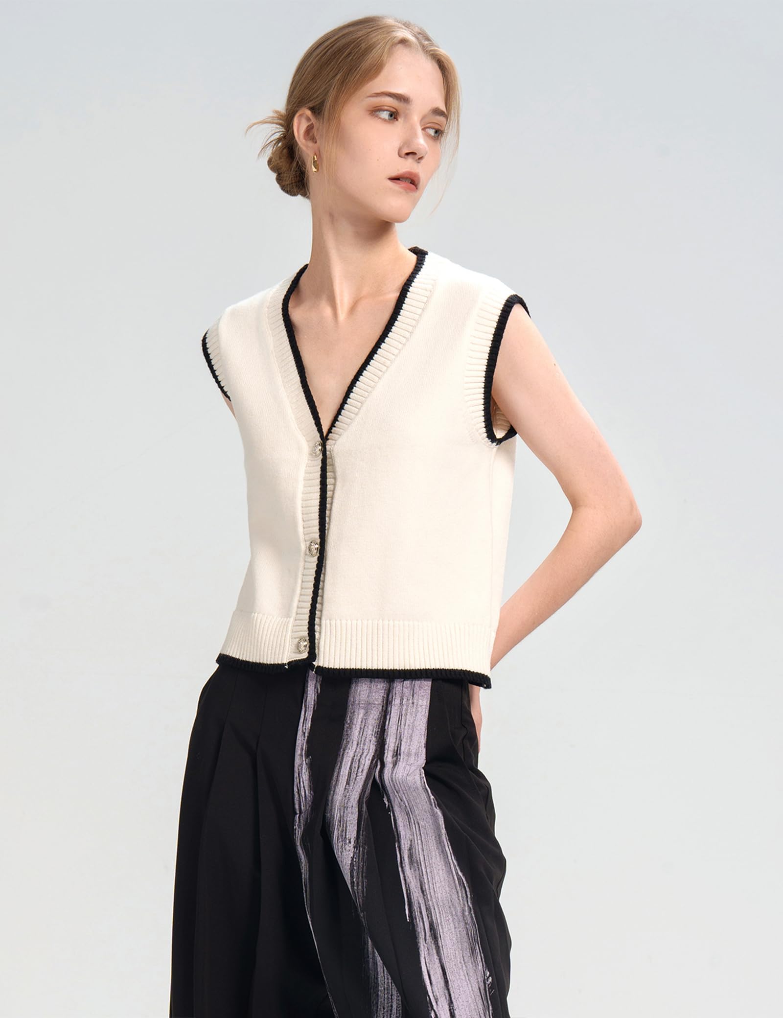 Unique design: sleeveless knitted vest, autumn button sweater vest, women’s V-neck knitted vest, women’s loose knitted vest, winter sleeveless sweater vest, women’s colorblock knitted shirt, autumn wear