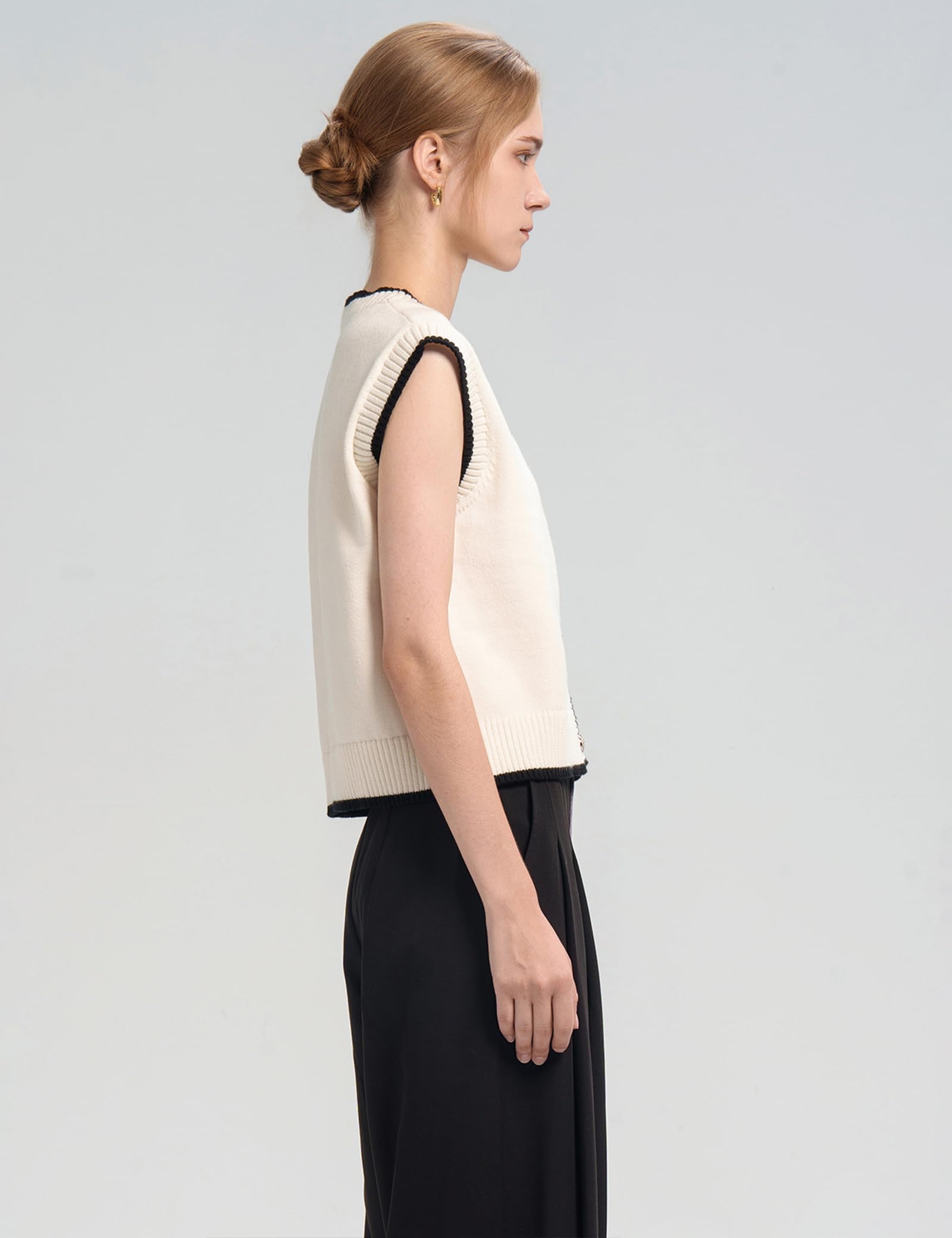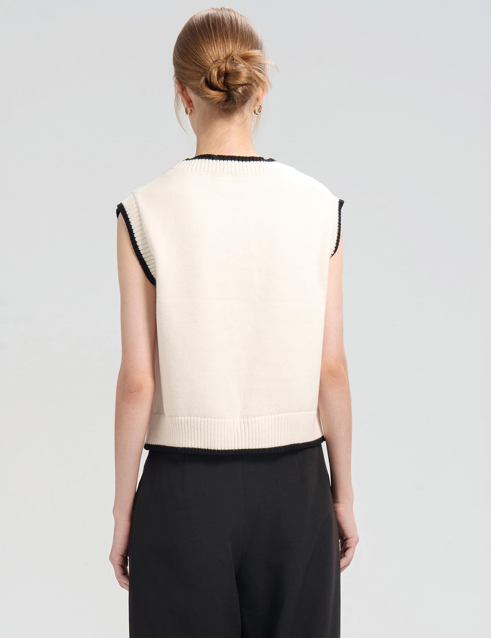 Material: Women’s colorblock sweater vest, fabric composition: 50% viscose, 25% nylon, 25% polyester. In autumn, winter and spring, you deserve such a casual sleeveless knitted top.