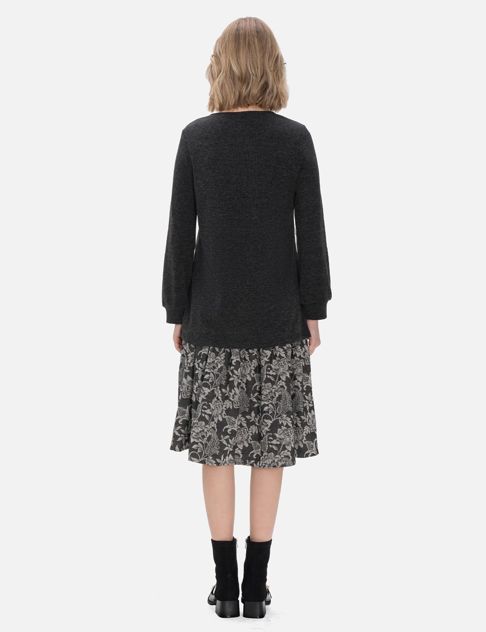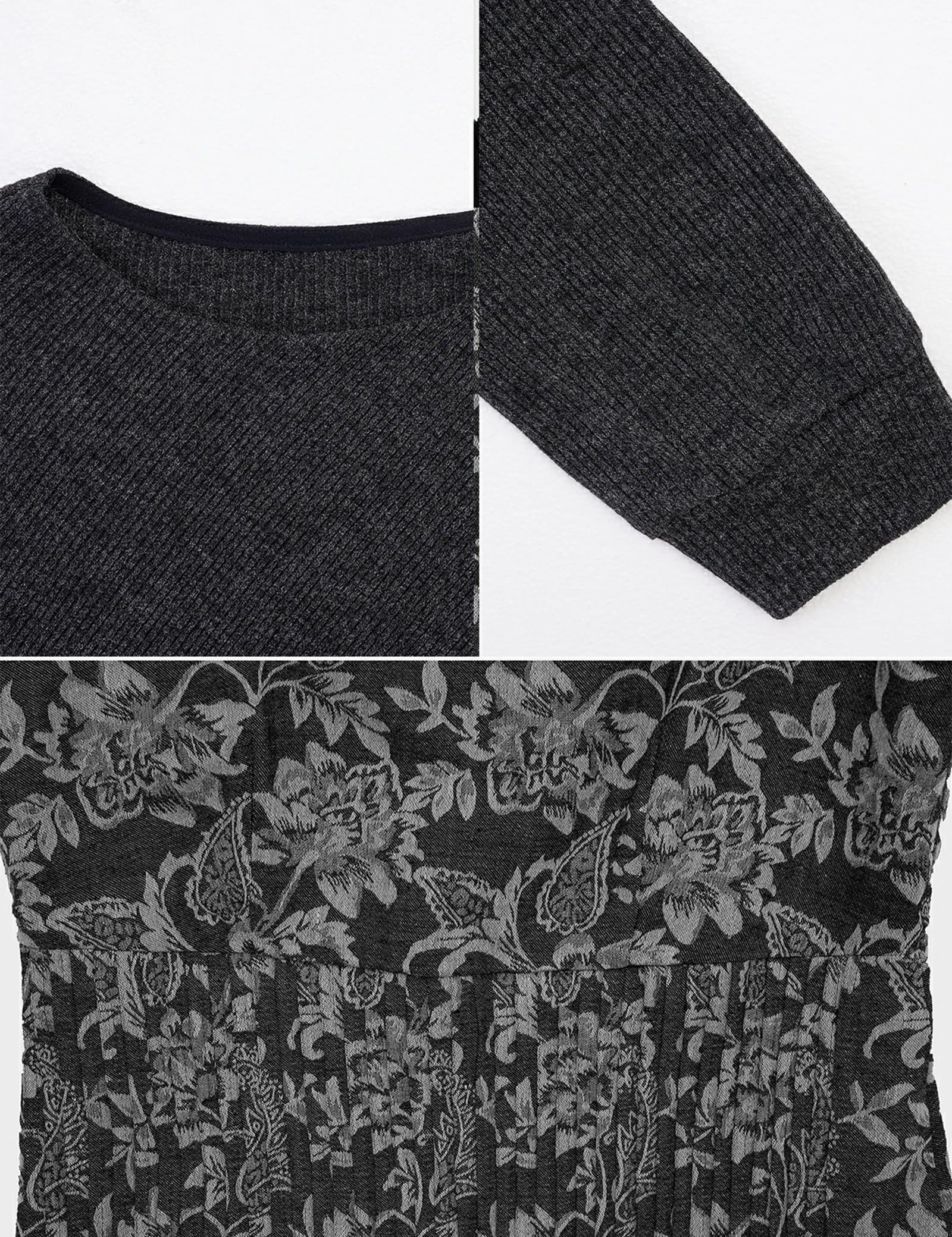 Material: Women’s Two-piece Dress Sweater Set is made of 100% Rayon, fashionable and casual, with unique designs such as jacquard floral print, long sleeves, etc.