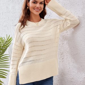 [Unique design] Pullover sweater, autumn long sleeve sweater, women’s round neck knitted sweater, women’s drop shoulder sweater top, women’s loose pullover sweater, winter knitted pullover sweater, women’s knitted shirt, autumn clothing