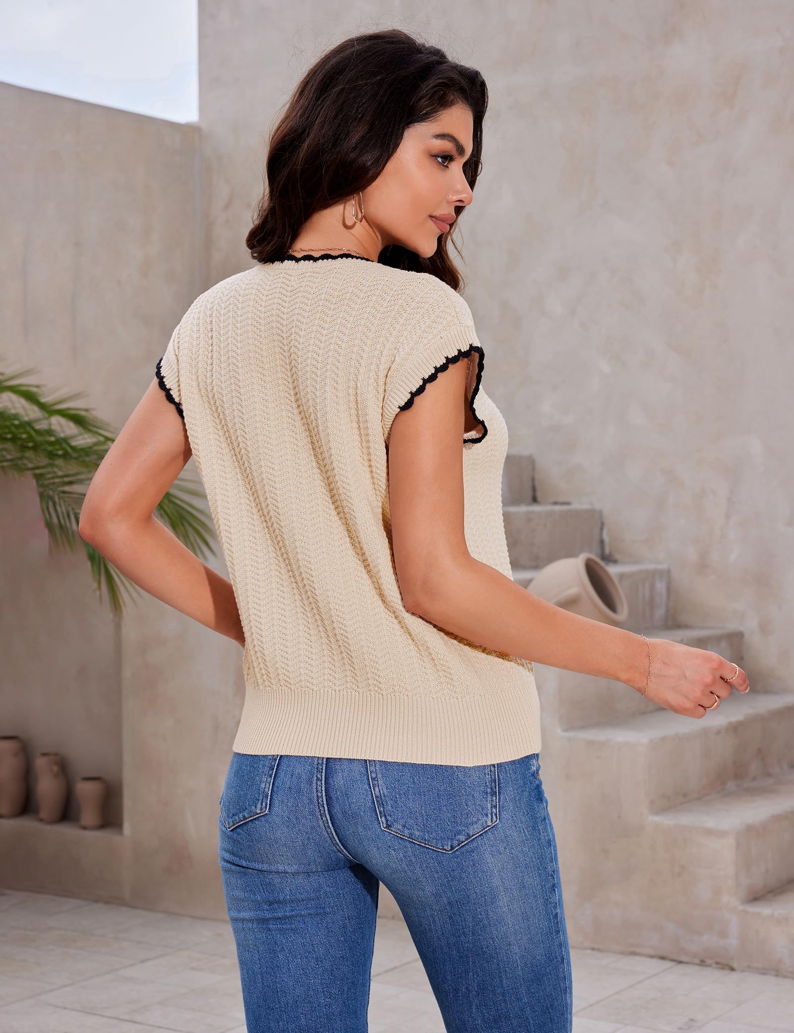 Unique Design: 2024 Summer Lightweight Knit Top, Cap Sleeve Sweater Top, Women’s Summer Knit Top, Crew Neck Sweater, Loose Knit Sweater, Basic Sweater Vest