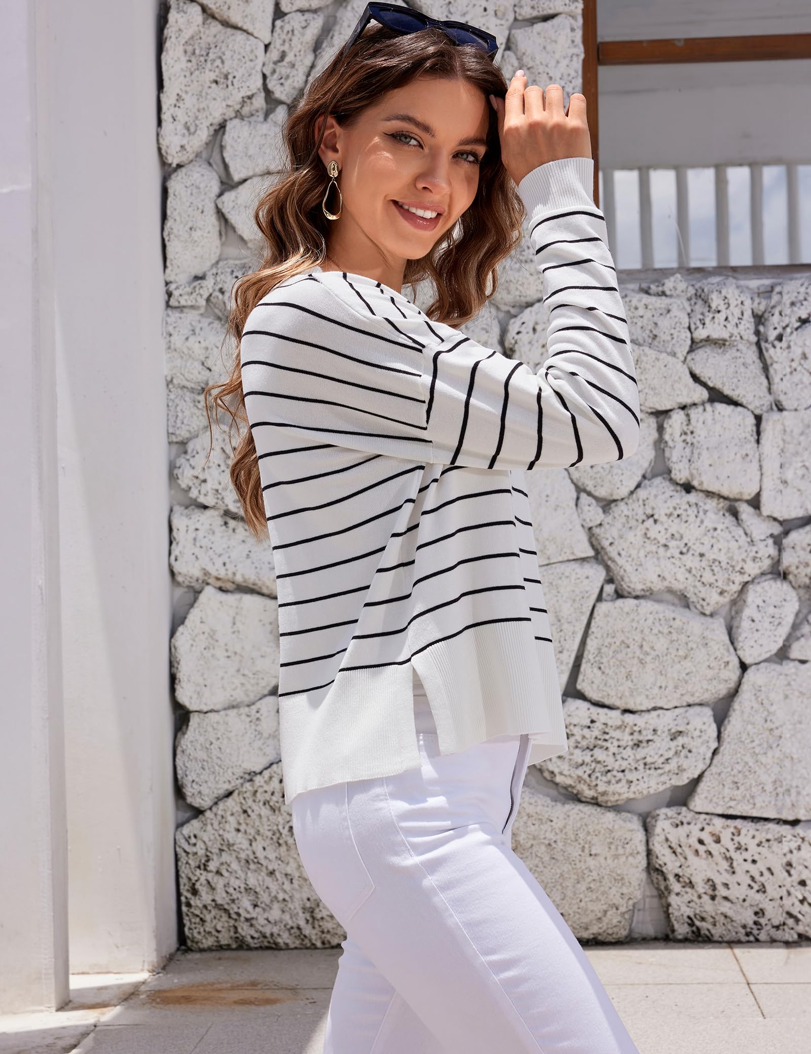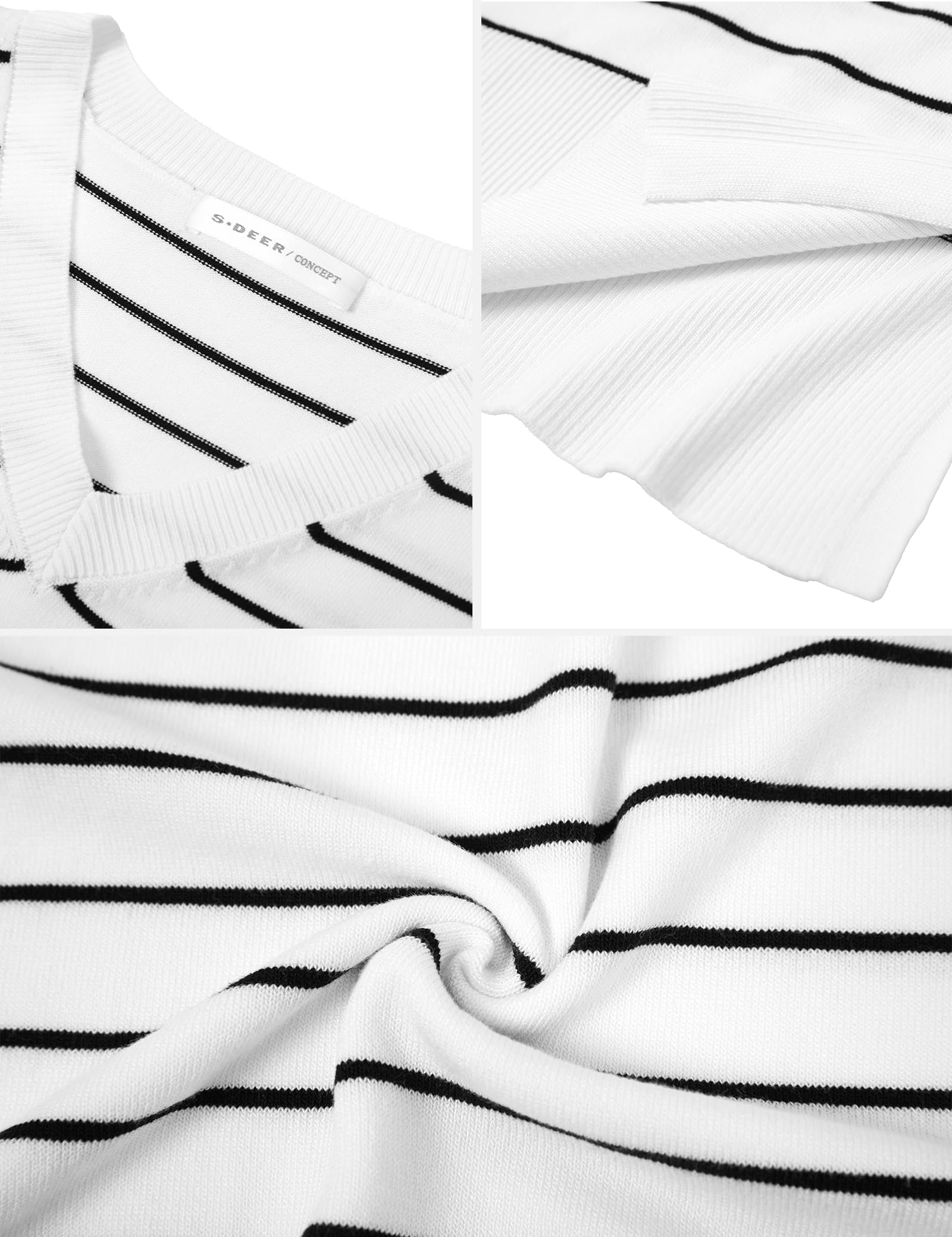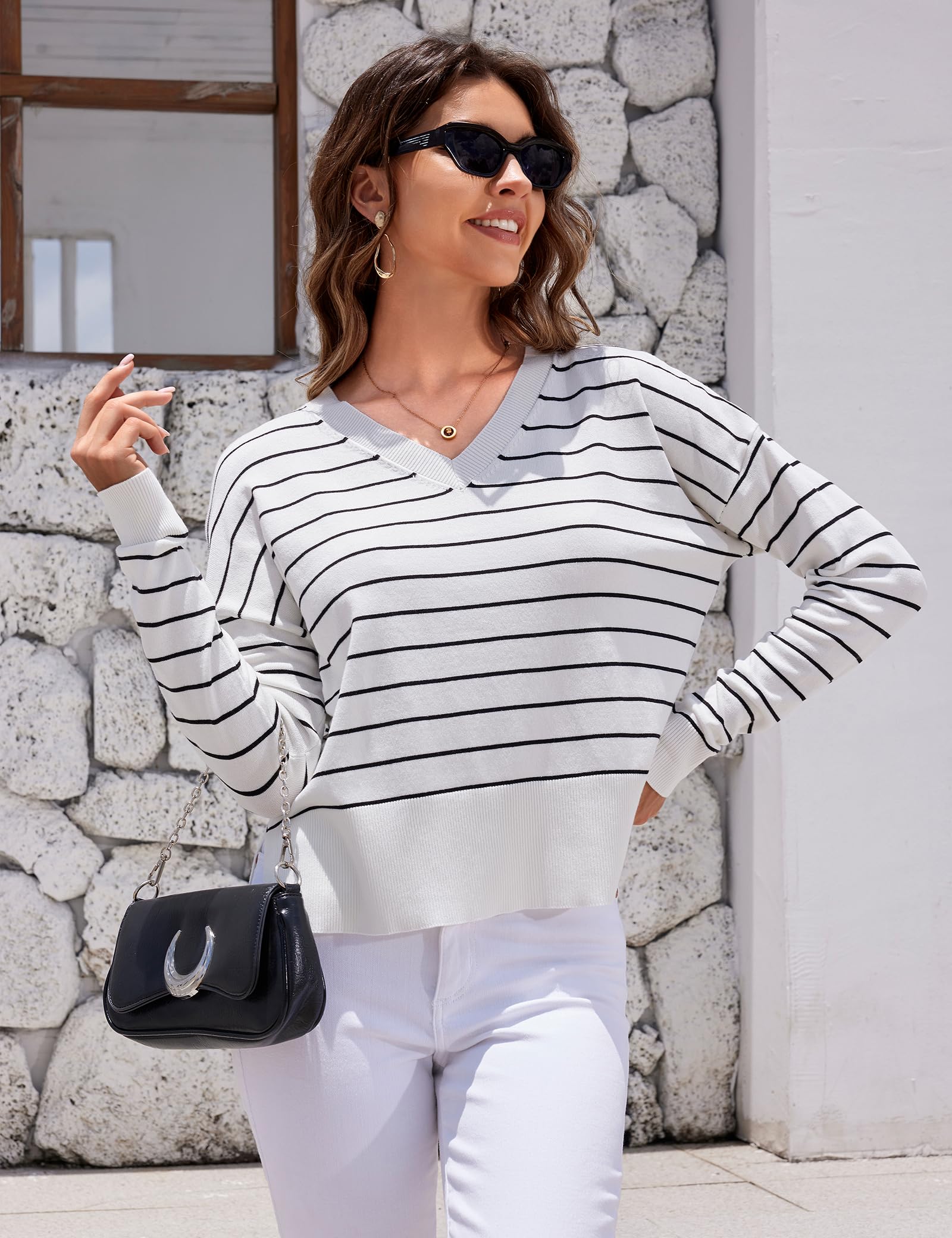 [Material] Women’s striped knit top is made of soft and stretchy fabric, comfortable and warm, bringing you easy charm. You deserve such a casual knit top in autumn, winter and spring. [Unique Design] Striped knit top, pullover, autumn long-sleeved knit top, women’s V-neck knit top, women’s dropped shoulder knit top, women’s loose pullover, long-sleeved knit pullover, women’s ribbed knit shirt, autumn clothing. [Matching] This basic knit pullover can be paired with leggings and sneakers, or with short boots to create an autumn and winter look. [Applicable Occasions] V-neck striped knit top is suitable for daily wear, casual wear, home wear, workplace wear, party wear, dating wear, festival wear, daily casual wear, anniversary party, office wear, wedding wear, cocktail wear, nightclub wear, cold weather wear, casual party wear, winter, autumn and spring wear. [Note] Please refer to the “Size Chart” before placing an order.